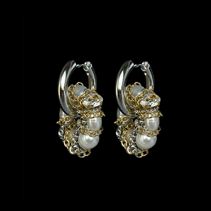 Серьги жемчужные с кристаллами Swarovski и цепями
