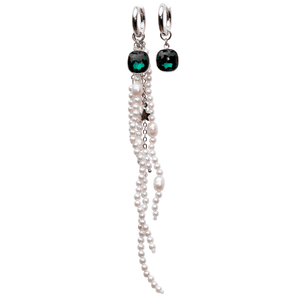 Серьги асимметричные с подвесками из кристаллов Swarovski и жемчуга