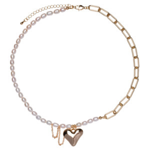 Колье из натурального жемчуга и цепи с металлическим сердцем