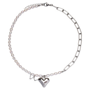 Колье из натурального жемчуга и цепи с металлическим сердцем