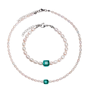 Сет: Колье-чокер из натурального жемчуга с кристаллом-кубом Swarovski и браслет из натурального жемчуга с кристаллом-кубом Swarovski